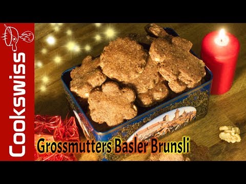 Grossmutters Basler Brunsli - Basler Kirsch - Grossmutters Basler Brunsli Rezept 1 Blech / ca. 30 Stück (542kcal/100g) Zutaten: 3 Beutel Baumnüsse (390g) 1 Tasse Zucker (250g) 1 Tafel Dunkle ...